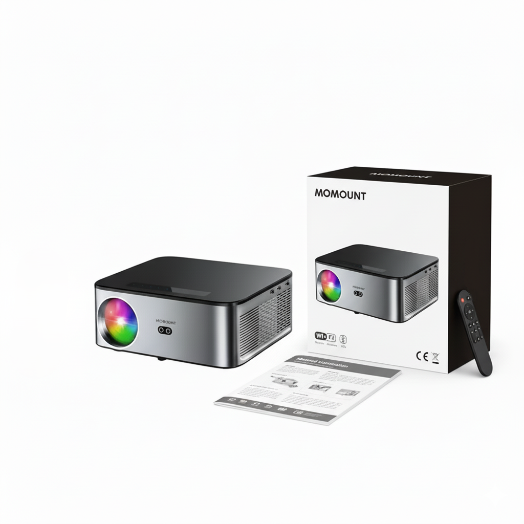 Ciesz się obrazem o kinowej jakości dzięki Momount™. Jego 250-calowy ekran oferuje natywną rozdzielczość Full HD i obsługuje formaty 1080P, 2K i 4K UHD, przekształcając każdą przestrzeń w dynamiczne kino, idealne do oglądania filmów, seriali lub prezentacji.